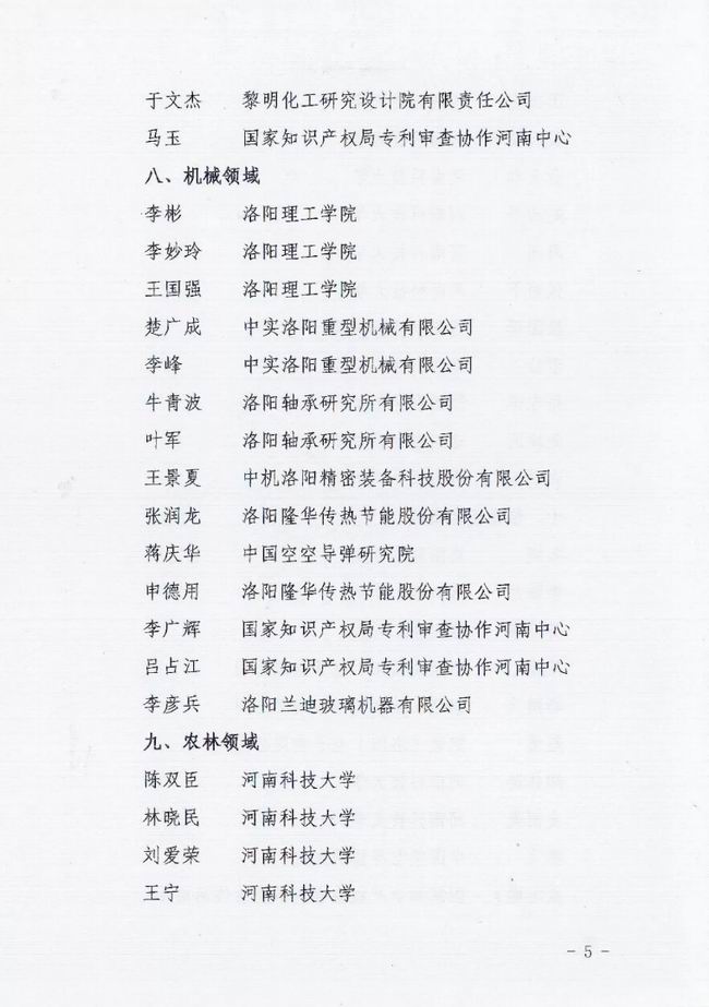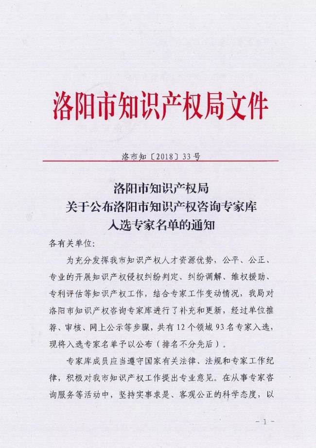 根據(jù)洛陽市知識(shí)產(chǎn)權(quán)局于2018年12月3日發(fā)布的《洛陽市知識(shí)產(chǎn)權(quán)局關(guān)于公布洛陽市知識(shí)產(chǎn)權(quán)咨詢專家?guī)烊脒x專家名單的通知》(洛市知【2018】33號(hào)),中機(jī)洛陽精密裝備科技股份有限公司總經(jīng)理王景夏先生,入選為專家?guī)斐蓡T。